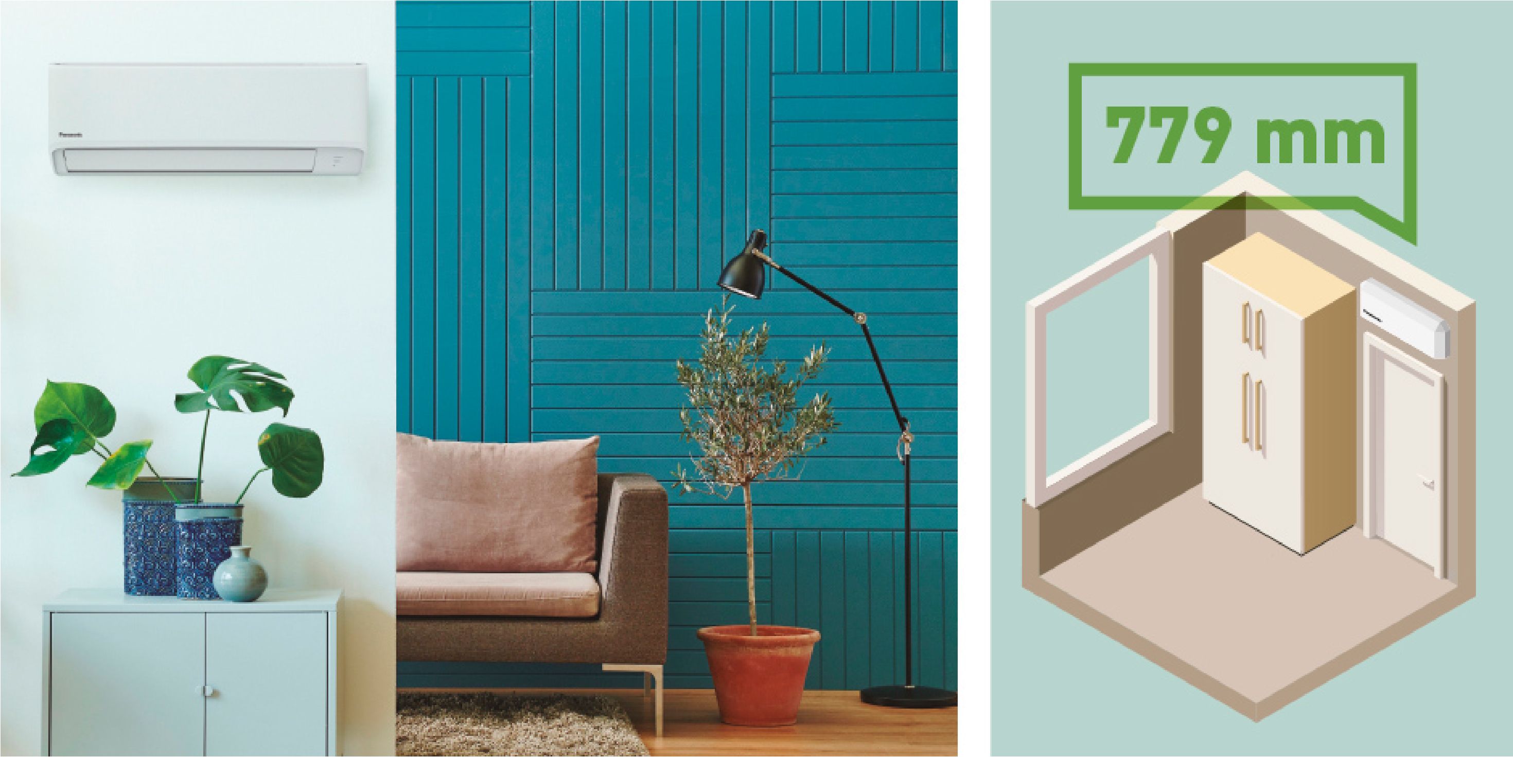 Szerokość nowych kompaktowych jednostek wewnętrznych wynosi zaledwie 779 mm. Daje to więcej możliwości pod względem montażu, także w